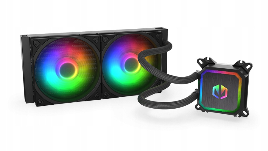 Wydajny wodny system chłodzenia procesora Endorfy Navis z chłodnicą o wielkości 240 mm z fabrycznie zamontowanymi dwoma wentylatorami Fluctus 120 PWM ARGB.