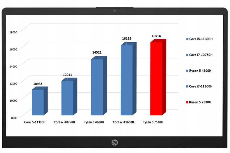 - Wydajny procesor sześciordzeniowy AMD Ryzen 5 7530U 6 x 2.0GHz + tryb TURBO 4.5GHz to ponad 50% wyższa wydajność w stosunku do i5-11300H. AMD Ryzen 5 7530U gwarantuje obniżone zużycie energii, co pozwala na dłuższą pracę na baterii. Dzięki technologii SMT do dyspozycji mamy 12 rdzeni logicznych (wątków) w systemie operacyjnym Windows.