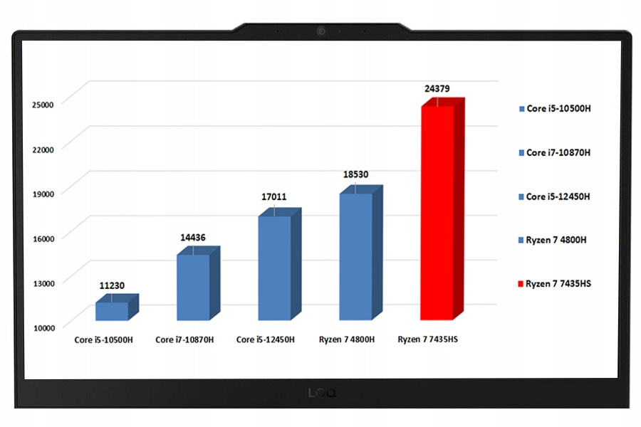 - Wydajny procesor ośmiordzeniowy AMD Ryzen 7 7435HS 8 x 3.1GHz + tryb TURBO 4.5GHz to prawie dwukrotnie wyższa wydajność w stosunku do i7-10870H. AMD Ryzen 7 7435HS gwarantuje obniżone zużycie energii, co pozwala na dłuższą pracę na baterii. Dzięki technologii SMT do dyspozycji mamy 16 rdzeni logicznych (wątków) w systemie operacyjnym Windows.