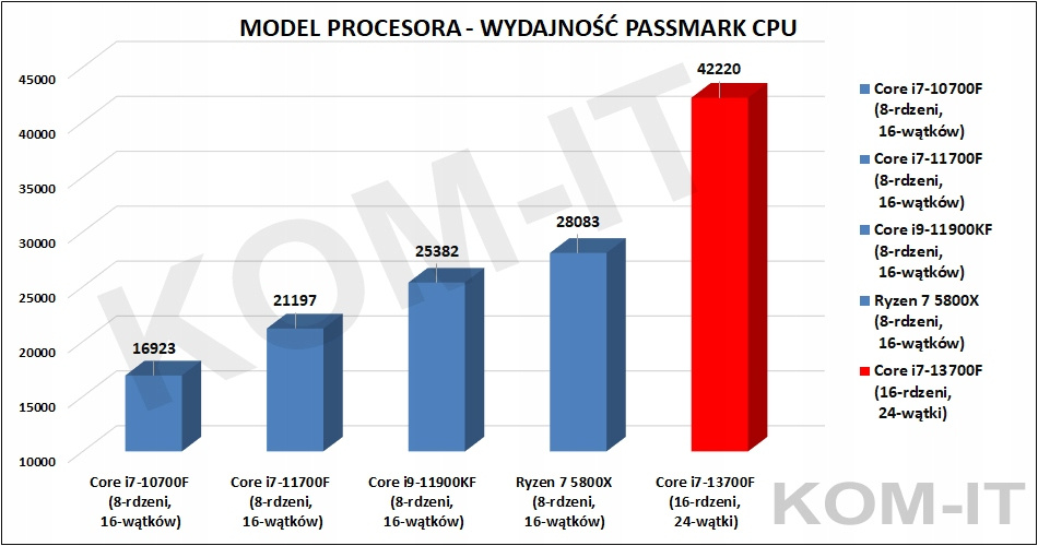 Procesor (model): Intel Core i7-13700F (Turbo 5.2GHz, 24 wątki)