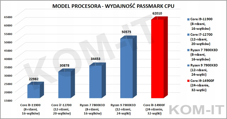 Procesor (model): Intel Core i9-14900F (Turbo 5.8GHz, 32 wątki)